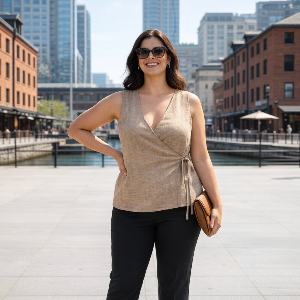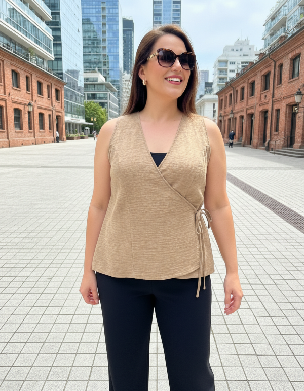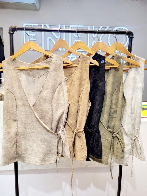 CHALECO BATIK EN LINO VINTAGE, CRUZADO PARA ATAR. ATENCION, SE PUEDE HACER COMBINACION CON EL SHORT BATIK