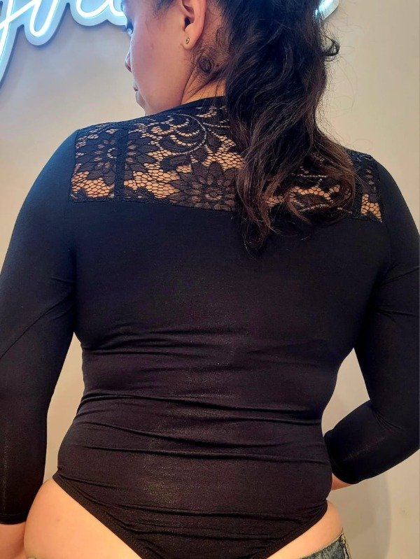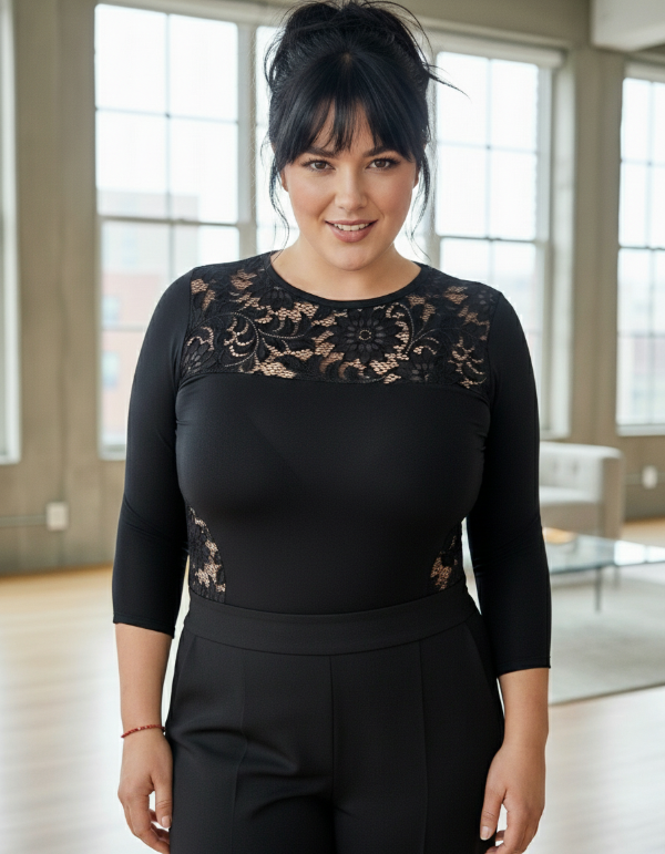 Body en mangas 3/4 en modal viscosa con detalles combinado con encaje.