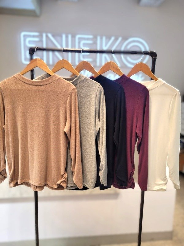 Media polera en mangas largas fruncidas y costados fruncidos en morley friza, super suavecito y abrigado