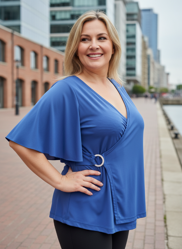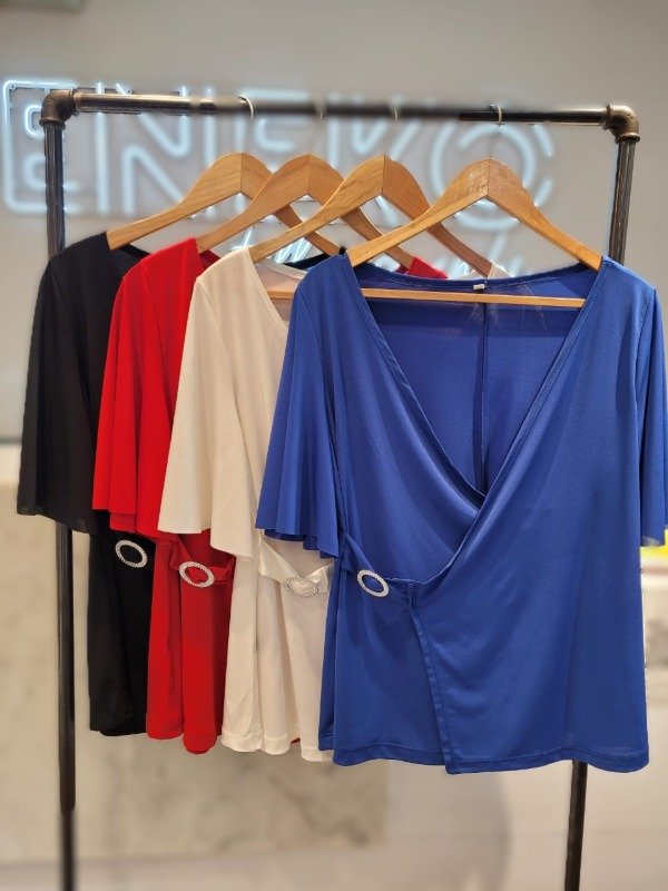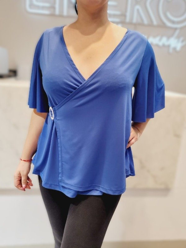 Remera cruzada en ITY con mangas anchas y detalle de un Aro Brillante