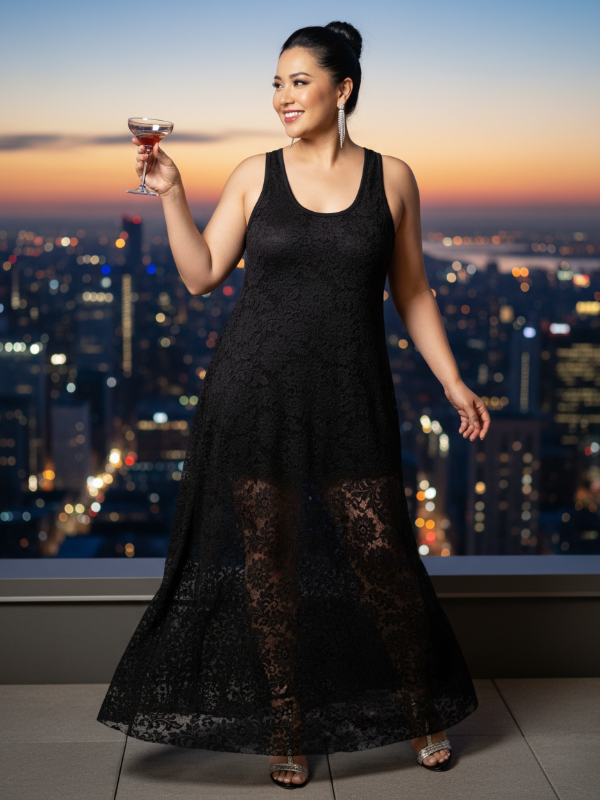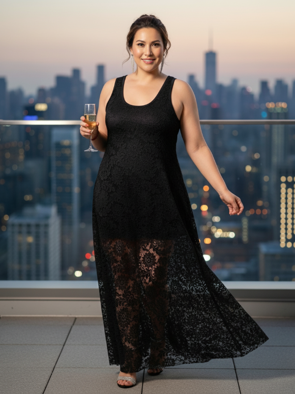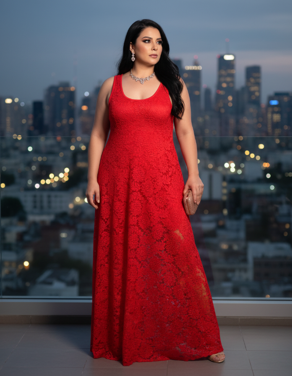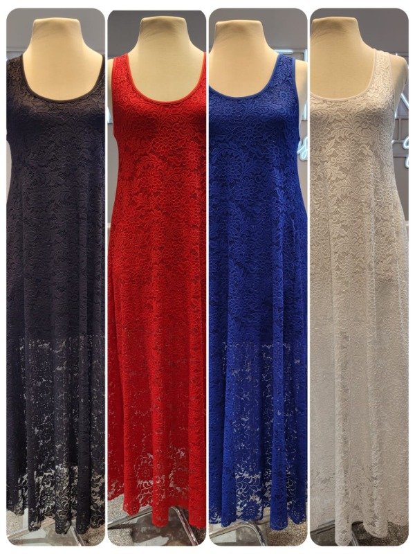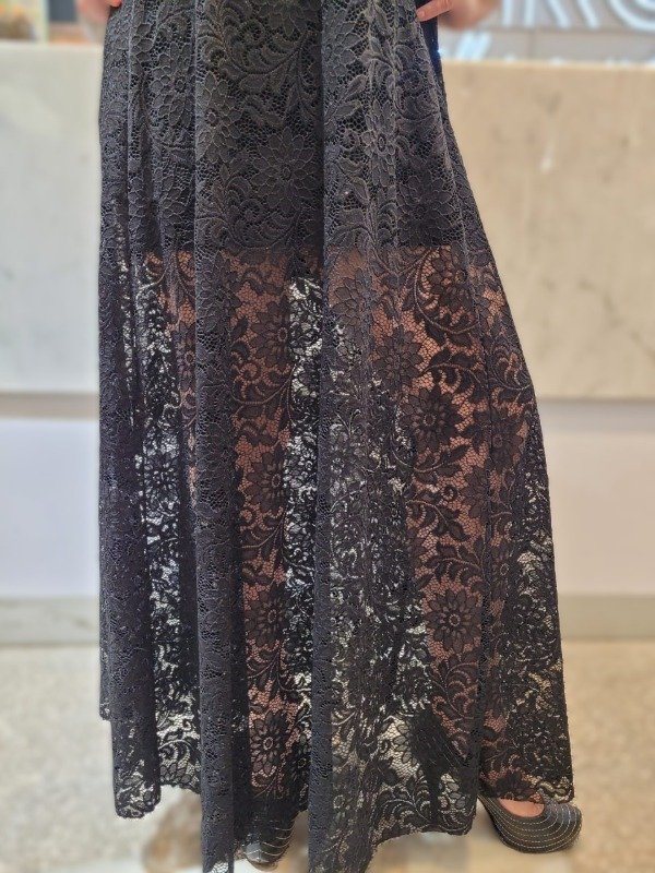 Maxivestido superpuesto de Encaje con Brillo elastizado y forro de modal.