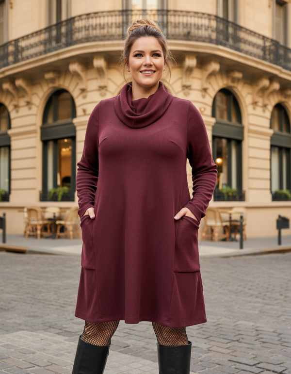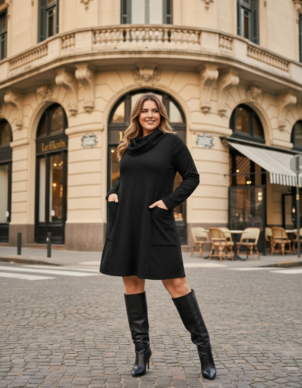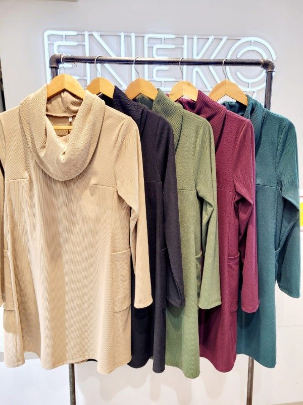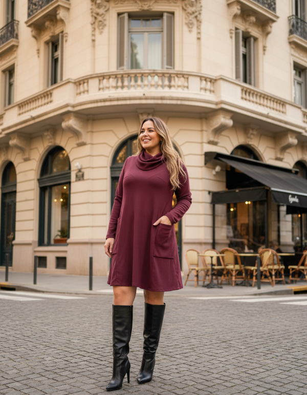 VESTIDO EVASEE TIPO POLERON CON BOLSILLOS en lanilla morley rustico.