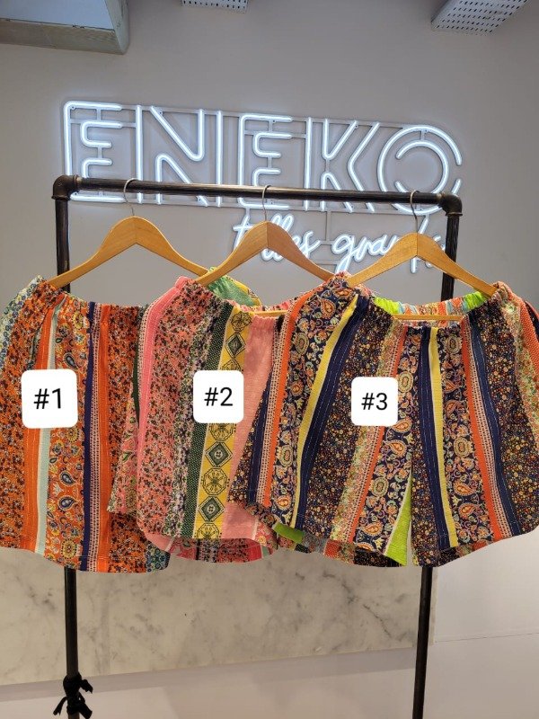 Short Estampado en Poposa con bolsillos y elastico en la cintura. Talles XL y XXL. Colores: #1, #2 y #3