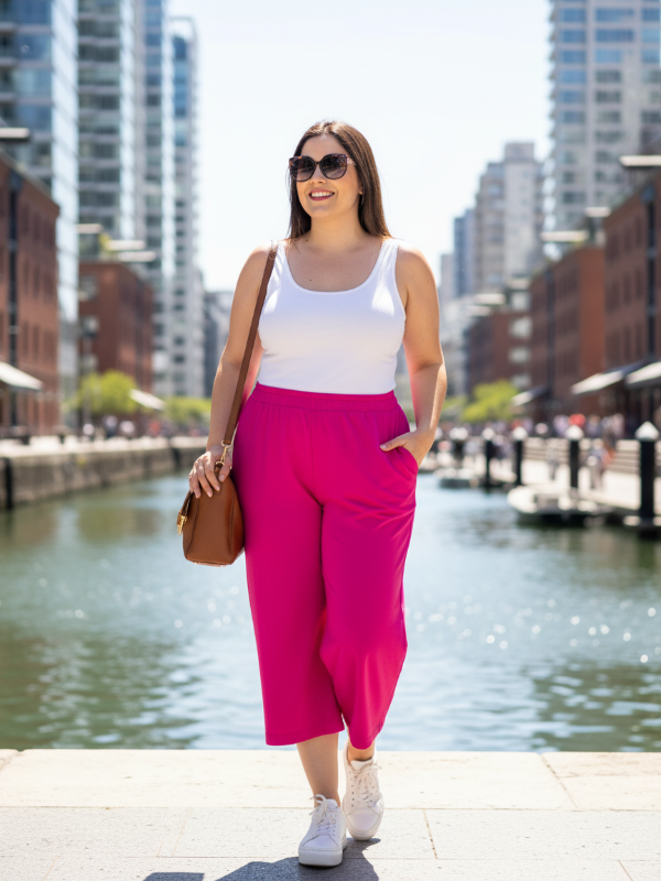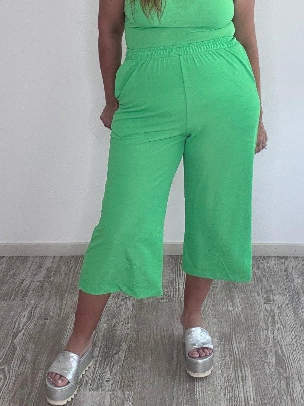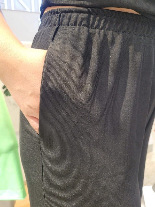 Pantalon corto o pantacourt en ribb elastizado con bolsillos.