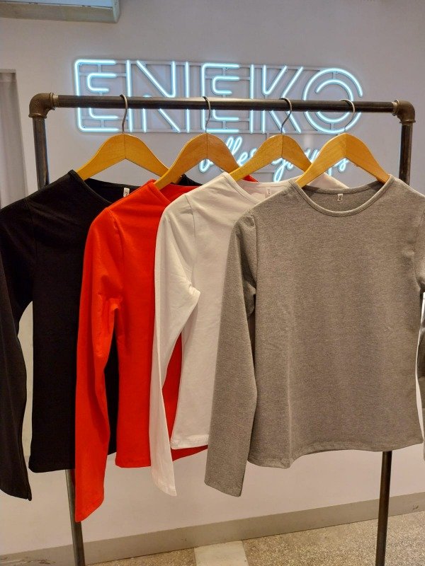 Camiseta al cuerpo con mangas largas en algodon con lycra. Talles: L XL y XXL. Colores: Negro, Rojo, Blanco y Melange