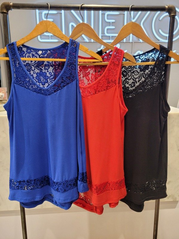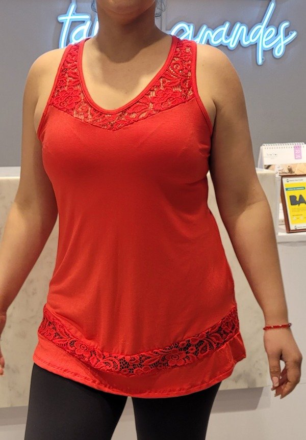 Musculosa larga en modal viscosa al cuerpo combinada en el escote y detalle del ruedo combinacion con encaje.
