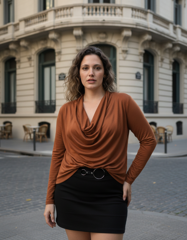 remera cuello buche de manga larga en modal viscosa