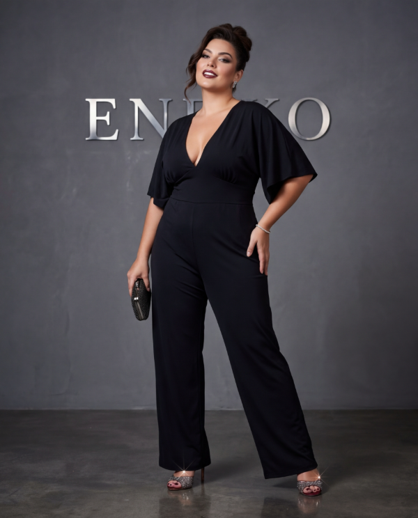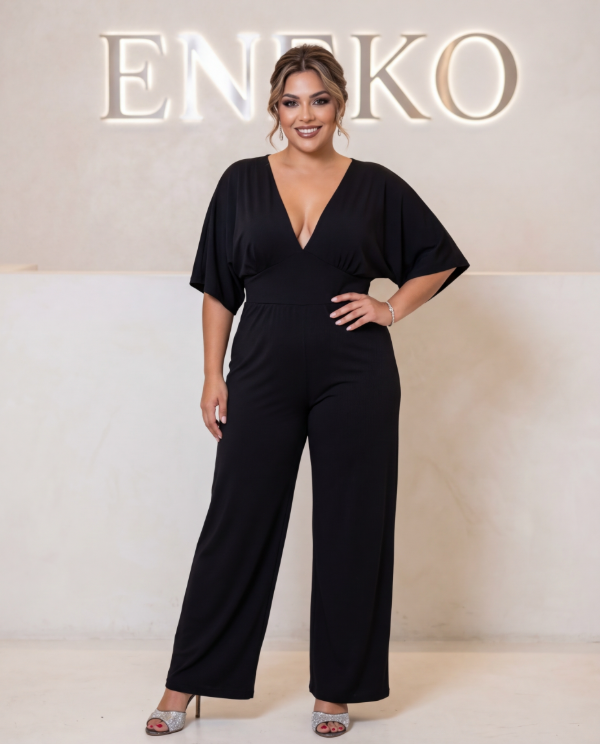 Mono largo con mangas anchas en seda fria, escote en "V" y tiene bolsillos