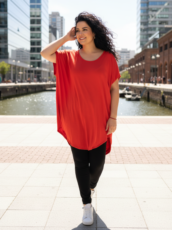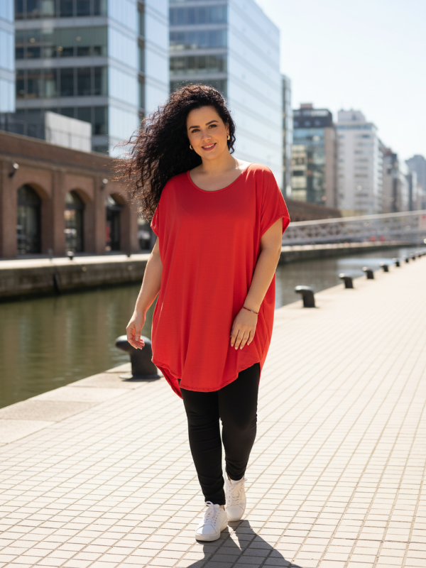 Remeron tipo vestido englobado en modal viscosa y escote redondo en mangas cortas